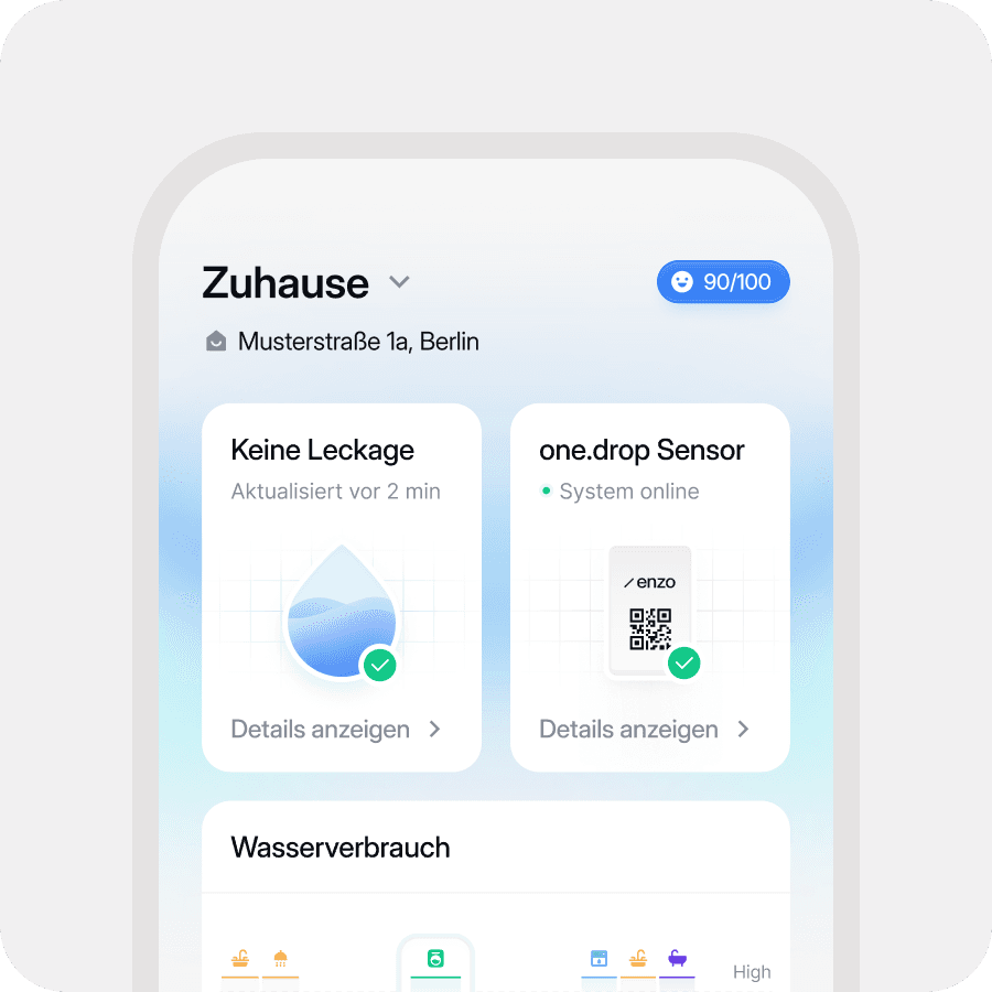 Enzo erkennt Lecks automatisch, schützt ganz ohne Wartung und erspart dir den Aufwand – und das alles mit Versicherungsschutz.