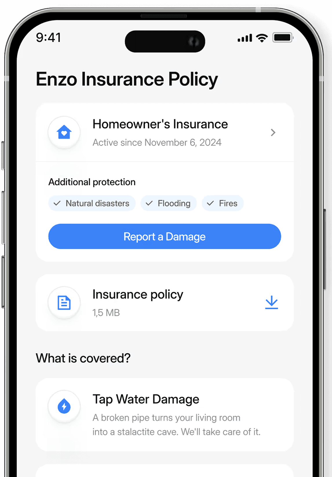 Smart insurance for smart homeowners. Perfectly tailored to the one.drop IoT sensor and fully digital. An innovative blend of comprehensive, proven insurance coverage and modern smart home technology. Fully protecting you and your home.